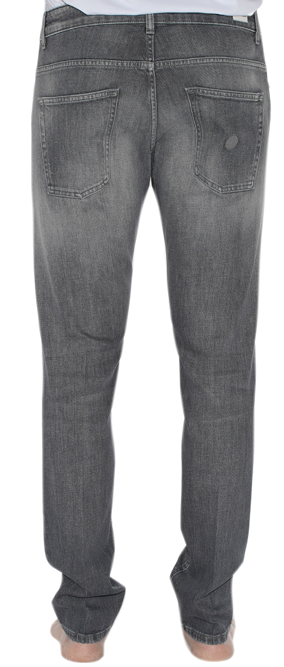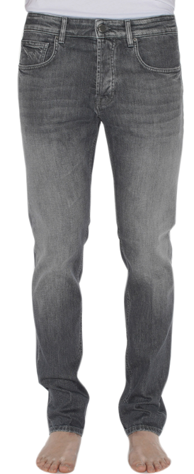 Jeans linea Regular liscio, colorato grigio  medio/chiaro, modello e vestibilità comoda, lunghezza a coprire la caviglia, tessuto elasticizzato per un massimo confort, pallino grigio medio a tinta  ricamato identificativo azienda tasca posteriore destra, Gold Rose Button. Pantalone da uso quotidiano per chi cerca una grande comodità. Capo Made in Italy.